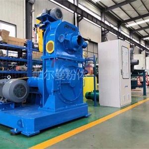 負(fù)壓空氣研磨系統(tǒng)的設(shè)備積垢問題經(jīng)常是討論的焦點。設(shè)備的清洗,特別是輸送風(fēng)機的清洗過于耗時。此外,在開機和關(guān)機過程中風(fēng)機葉輪上的積垢還可能剝落,導(dǎo)致風(fēng)機的振動及其運轉(zhuǎn)狀態(tài)的振蕩。因此可考慮由負(fù)壓流程改為正壓流程。在新的工作模式下風(fēng)機安裝在分級磨之前,將工藝空氣壓入研磨系統(tǒng)。這種工作模式的優(yōu)點是研磨后的碳酸氫鈉不通過風(fēng)機運輸,完全避免了風(fēng)機的積垢問題。此外風(fēng)機的耗電也有所降低,使經(jīng)營成本更低,但是對設(shè)備的密封性能提出了更高的考驗,無論是設(shè)備的設(shè)計結(jié)構(gòu)、加工精度及配合都有嚴(yán)格的要求,設(shè)備的造價成本也會更高。