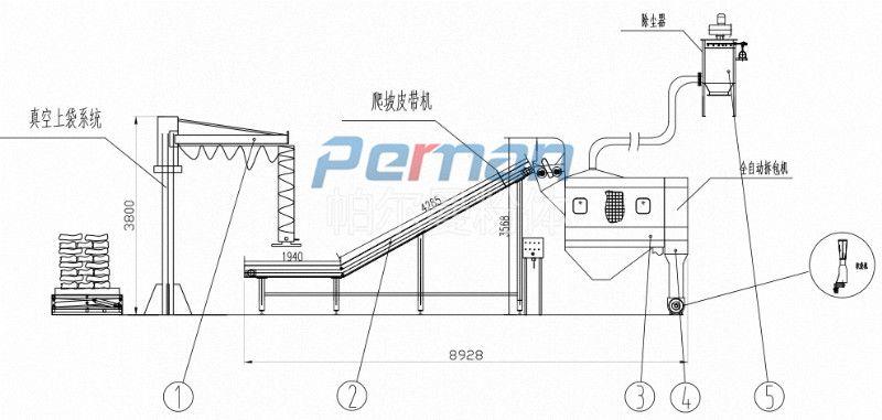 2、現場僅需一至兩人將包裝袋放置皮帶輸送機上即可,減輕了工人的作業強度。