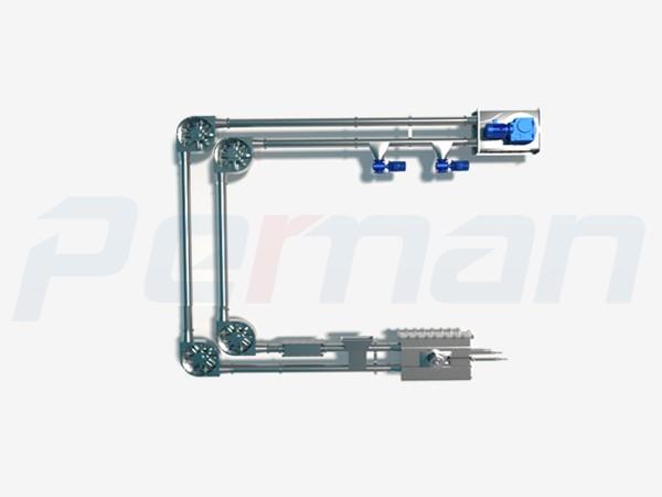 管鏈輸送機(jī)也被稱作鏈板式輸送機(jī),是在密閉的管子內(nèi)部進(jìn)行運(yùn)動(dòng)的一個(gè)機(jī)械系統(tǒng),在輸送系統(tǒng)中具有性能穩(wěn)定、節(jié)省能耗的特點(diǎn).可以連續(xù)輸送粉狀、小顆粒狀及小塊狀等散狀物料,也可以水平、傾斜和垂直組合輸送。